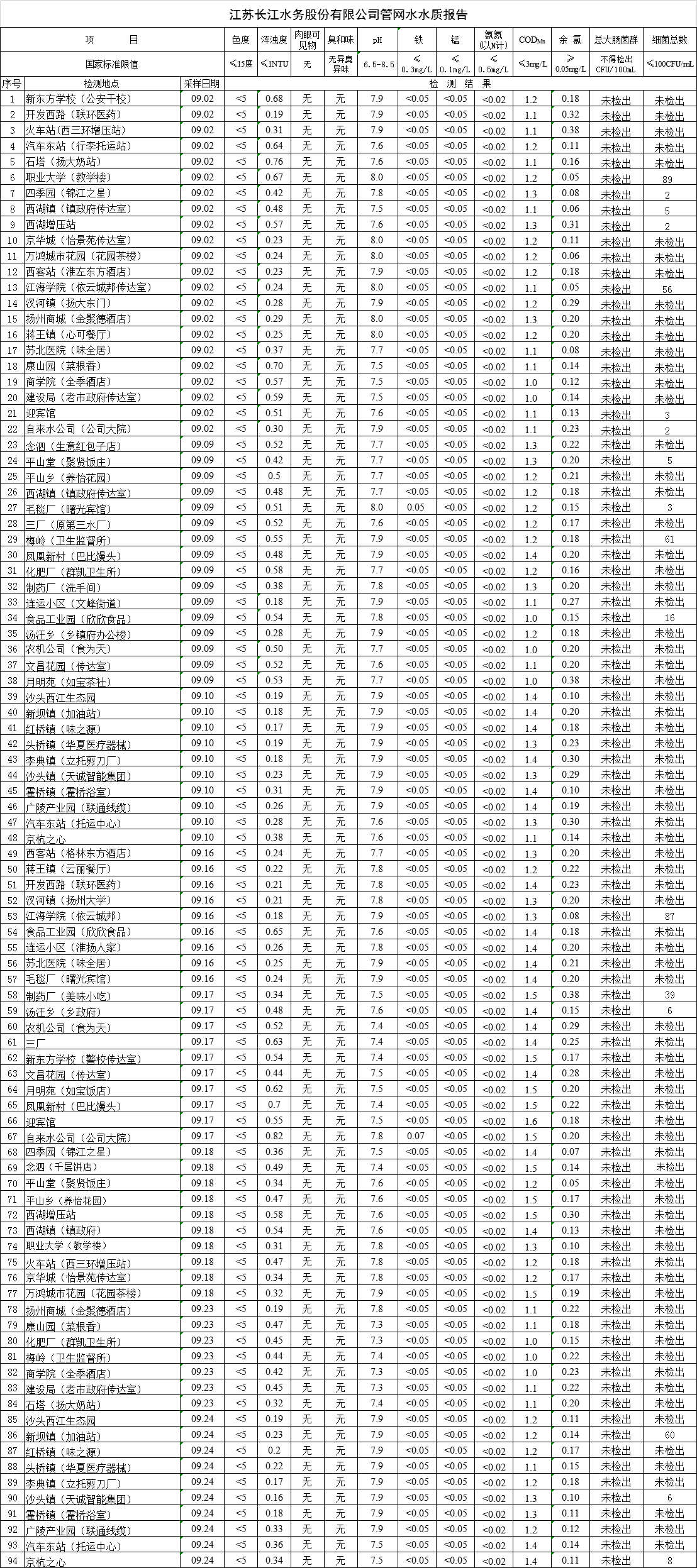 江蘇長(zhǎng)江水務(wù)股份有限公司管網(wǎng)水水質(zhì)報(bào)告(2019年9月)