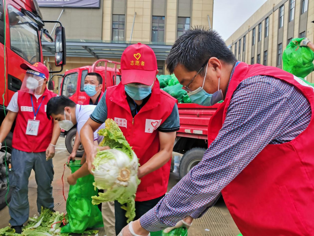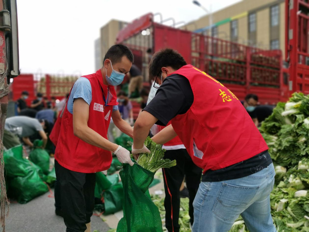 由于蔬菜數(shù)量龐大,為保障居民能夠及時拿到“愛心菜”,13:30,城控集團(tuán)又從各志愿服務(wù)小組緊急抽調(diào)50名志愿者奔赴萬噸冷鏈進(jìn)行現(xiàn)場支援。