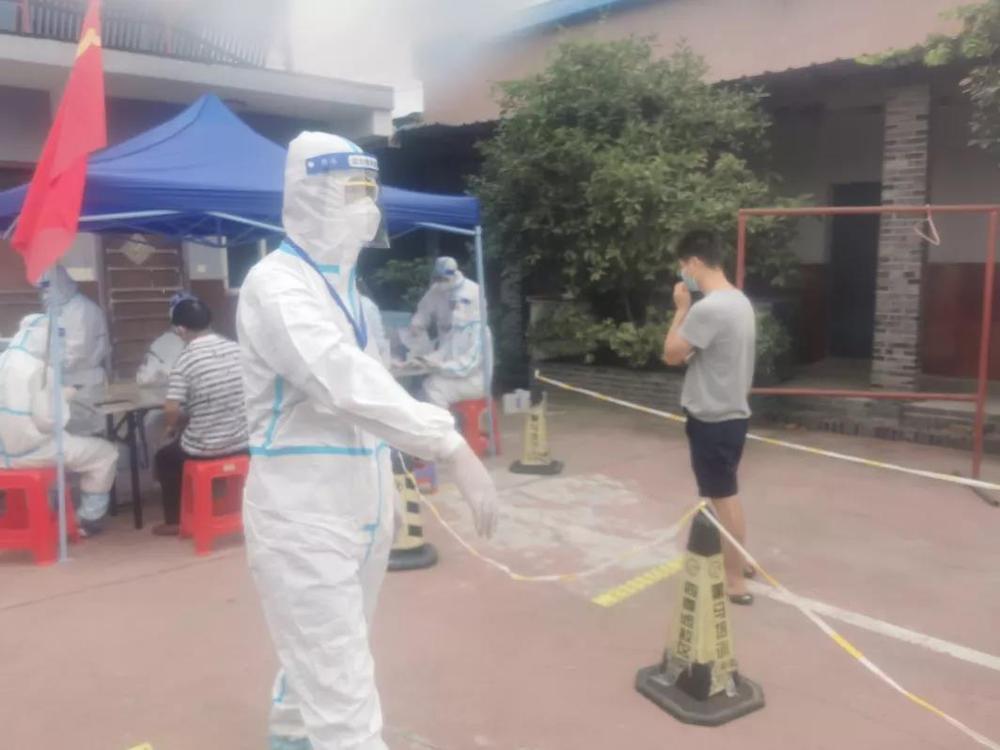 其間有部分群眾因排隊時間長而情緒激動,沖到隊員面前詢問、質問,甚至有人脫下口罩??申爢T們沒有退開,即使知道可能危險就在身邊,他們勇敢地站在群眾中間,用手掌充當擴音器,大聲地向群眾解釋,安撫大家情緒,規(guī)勸他們戴好口罩、保持距離。最終,志愿者的真誠付出打動了在場的居民,大家依次排隊有序完成了核酸檢測工作。