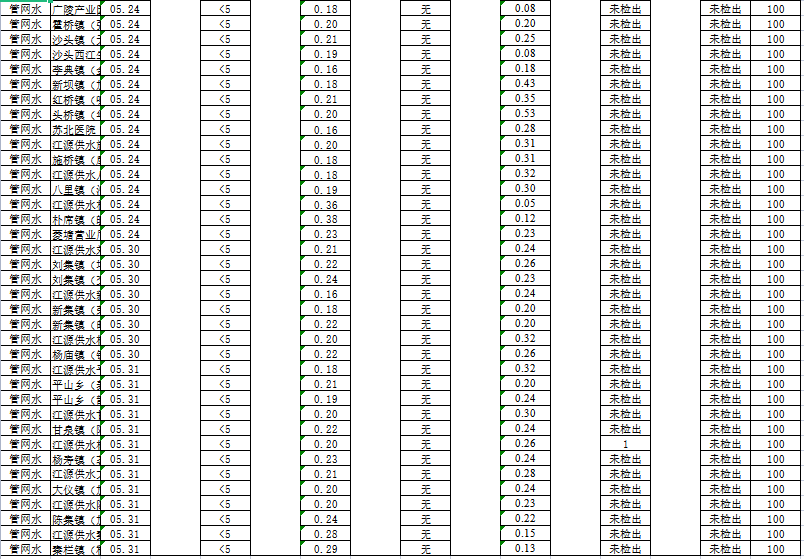 揚州市管網(wǎng)水2022年5月(下半月)水質(zhì)信息公開表