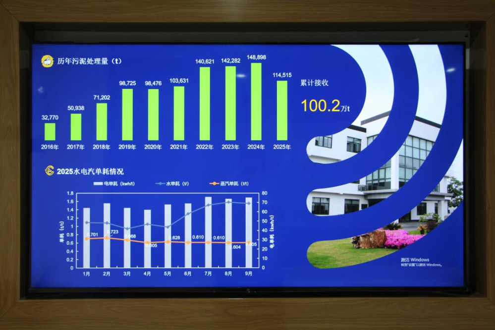 在工藝管控與環(huán)保達(dá)標(biāo)層面,企業(yè)搭建全流程智能監(jiān)測體系:污泥進(jìn)場時,通過自動采樣設(shè)備檢測金屬、有機(jī)物含量,杜絕不合格污泥入場;干化過程中,中控系統(tǒng)實(shí)時監(jiān)控溫度、濕度、蒸汽壓力等十余項(xiàng)關(guān)鍵參數(shù),偏差超限時自動報(bào)警調(diào)整,通過精細(xì)化管理,企業(yè)當(dāng)前蒸汽單耗較設(shè)計(jì)值下降32%,用電單耗較設(shè)計(jì)值下降15%,均處于行業(yè)領(lǐng)先水平;尾水、廢氣排放均遠(yuǎn)低于國家排放標(biāo)準(zhǔn),十年來污染物排放合格率始終保持100%,真正實(shí)現(xiàn)“安全處置、環(huán)保達(dá)標(biāo)、資源循環(huán)”的技術(shù)閉環(huán)。