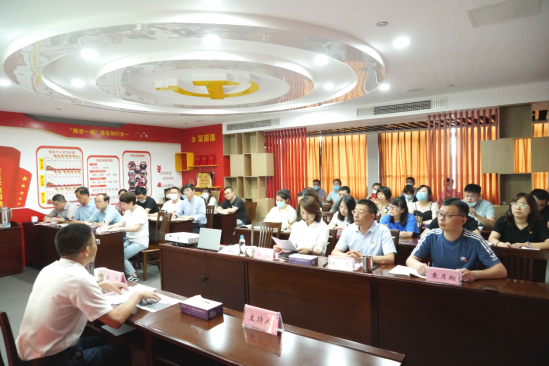 根據(jù)集團(tuán)黨委《關(guān)于開展集團(tuán)領(lǐng)導(dǎo)班子成員掛鉤聯(lián)系基層黨組織工作的通知》文件精神,集團(tuán)黨委副書記徐飛于2020年6月30日下午來到資產(chǎn)公司,以《深刻領(lǐng)悟高度重視做好新形勢下的意識形態(tài)工作》為課題開展了黨課教育。資產(chǎn)公司聯(lián)合黨支部書記、董事長主持會議,集團(tuán)審計部負(fù)責(zé)人、資產(chǎn)公司全體黨員、入黨積極分子、中層干部近40人參加了黨課學(xué)習(xí)。