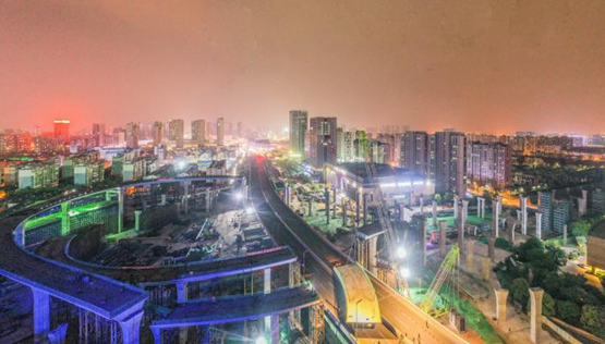 2020年5月7日 21點(diǎn)跨江陽路段高架鋼箱梁開始吊裝。