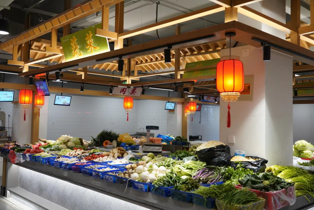 農(nóng)貿(mào)市場內(nèi)安裝了中央空調和排風系統(tǒng),同時還配備了電子信息屏,電子觸摸屏、室內(nèi)音響等硬件設施,為商家統(tǒng)一配發(fā)電子秤,并且把銀聯(lián)卡、微信、支付寶等網(wǎng)絡支付于體,便網(wǎng)絡支付更加便捷高效,全力構建市民身邊的放心菜場、星級菜場、智慧菜場。