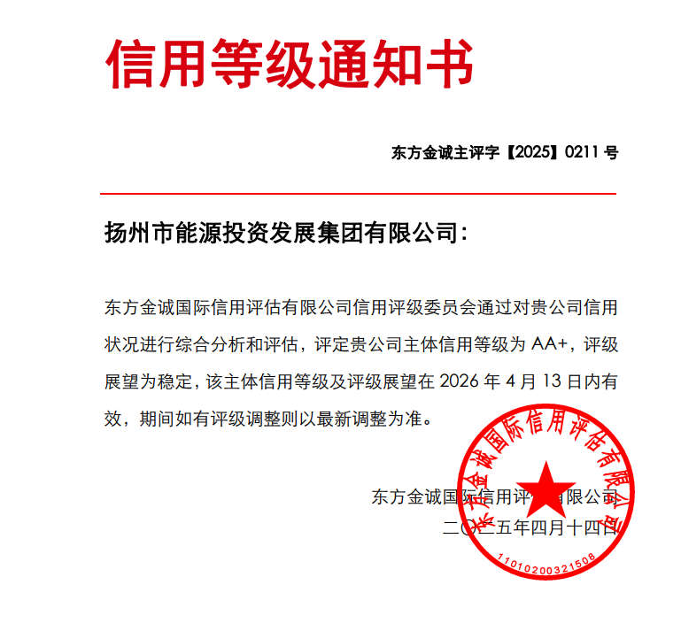 4月14日,經(jīng)國(guó)內(nèi)權(quán)威信用評(píng)級(jí)機(jī)構(gòu)東方金誠(chéng)國(guó)際信用評(píng)估有限公司評(píng)定,城控集團(tuán)下屬能源集團(tuán)獲得AA+主體信用評(píng)級(jí),評(píng)級(jí)展望為穩(wěn)定。