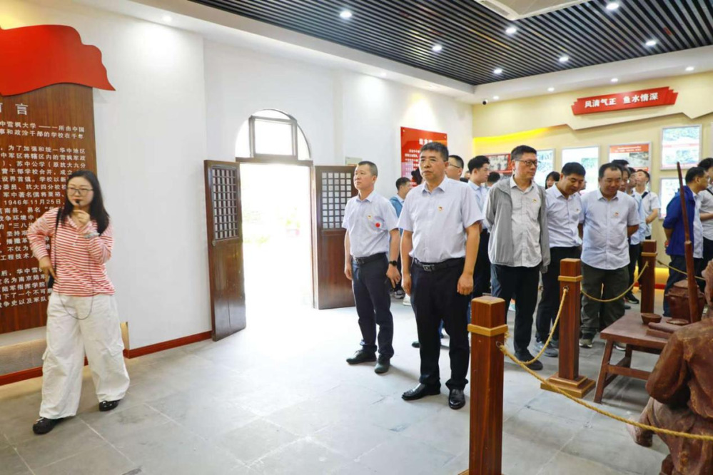 在華中雪楓大學舊址,全體人員通過參觀校史展覽和聆聽講解,了解了這所解放戰(zhàn)爭時期創(chuàng)辦的高等學校的輝煌歷史,對雪楓大學培養(yǎng)革命干部、為抗戰(zhàn)勝利和新中國成立做出的重要貢獻產(chǎn)生了深刻認識。隨后,大家來到揚州侵華日軍向新四軍投降處舊址,深入了解1945年新四軍收復高郵城的戰(zhàn)役歷程及受降儀式場景。銹紅的歷史浮雕、詳實的文字資料和直觀的沙盤模型,讓大家對高郵作為抗日戰(zhàn)爭“最后一役”發(fā)生地的歷史意義有了更深切的體會,對革命先輩們浴血奮戰(zhàn)、保家衛(wèi)國的英勇事跡肅然起敬。