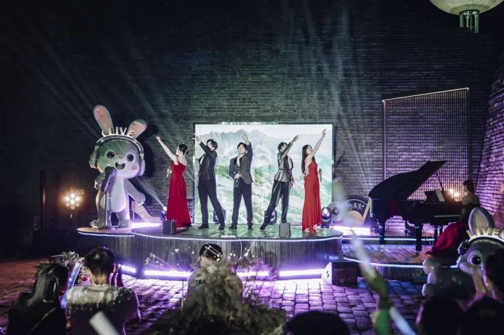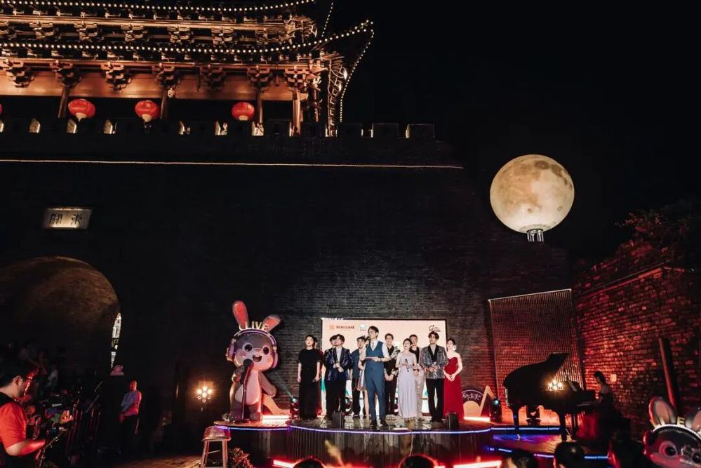 傍晚六點(diǎn)半,音樂會在主持人熱情洋溢的開場中拉開帷幕。在介紹完活動 “文旅賦能、文化碰撞、空間創(chuàng)新”的核心理念與到場嘉賓后,“紙鳶叩月?啟幕盛典” 儀式成為全場首個(gè)高潮——嘉賓們共同執(zhí)起 “時(shí)光之鑰”,叩響象征古今交融的 “時(shí)光月門”。伴隨主題旋律奏響,系著熒光絲帶的大紙鳶從東關(guān)城樓緩緩升空,嫦娥舞者輕盈起舞,冷焰火瀑布傾瀉而下,光影與音樂交織,瞬間將千年甕城化作連接歷史與當(dāng)下的 “音樂劇場”,正式宣告 “樂下東關(guān)” 微 Live 時(shí)光音樂會啟航。